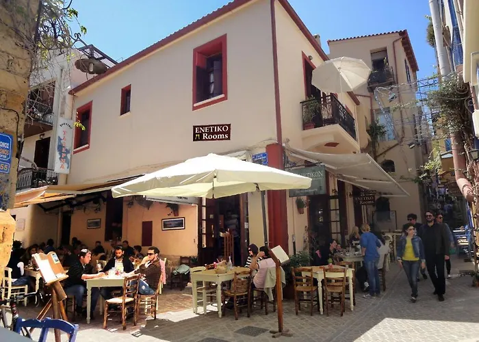 В паре минут ходьбы от отеля находится Муниципальный рынок в Ханье, а в 13 минутах ходьбы расположилась Площадь Стратигу Цанакаки. Примерно в 2 км от этого гостевого дома находится Nea Chora beach. Одно из преимуществ отеля Enetiko Rooms — расположение вблизи Венецианской гавани. Остановка автобуса Skalidi расположена в 10 минутах пешей прогулки от этого 3-звездочного отеля.